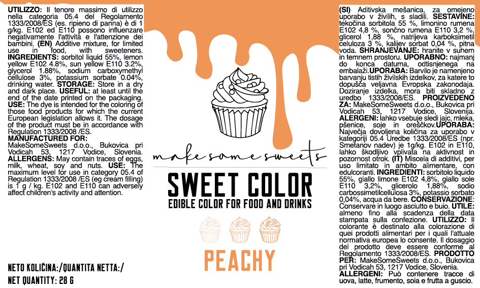 FABRICADO PARA: MakeSomeSweets d.o.o., Bukovica pri Vodice 53, 1217 Vodice, Eslovénia.