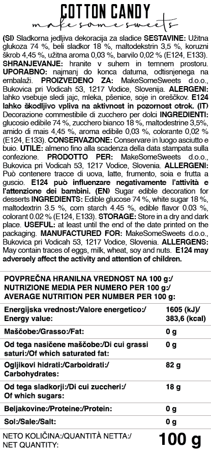 FABRICADO PARA: MakeSomeSweets d.o.o., Bukovica pri Vodice 53, 1217 Vodice, Eslovénia.